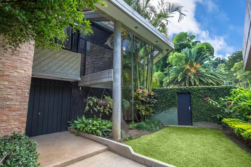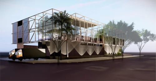 Propuesta para un Pabellón Multiproposito en la Universidad Católica Andrés Bello, Caracas, Venezuela. La cubierta busca mimetizarse, amalgamarse, y que la arquitectura se disuelva dentro del verde de la naturaleza.